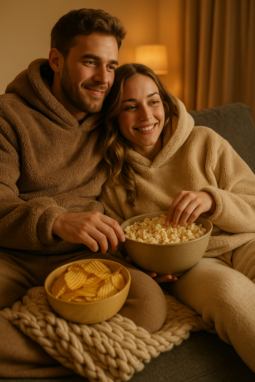 Nein – der Stoff hält warm, ohne zu überhitzen. Perfekt für kalte Tage, gemütliche Abende und auch für unterwegs.